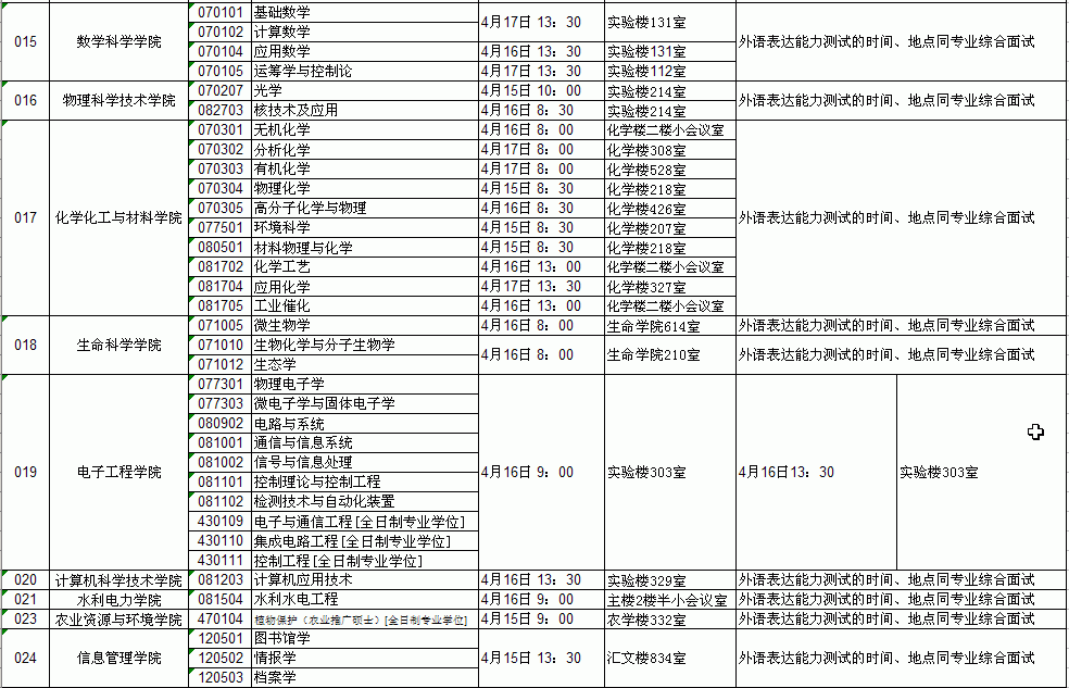 2010年硕士研究生招生复试专业综合面试和外语表达能力测试安排表(3)